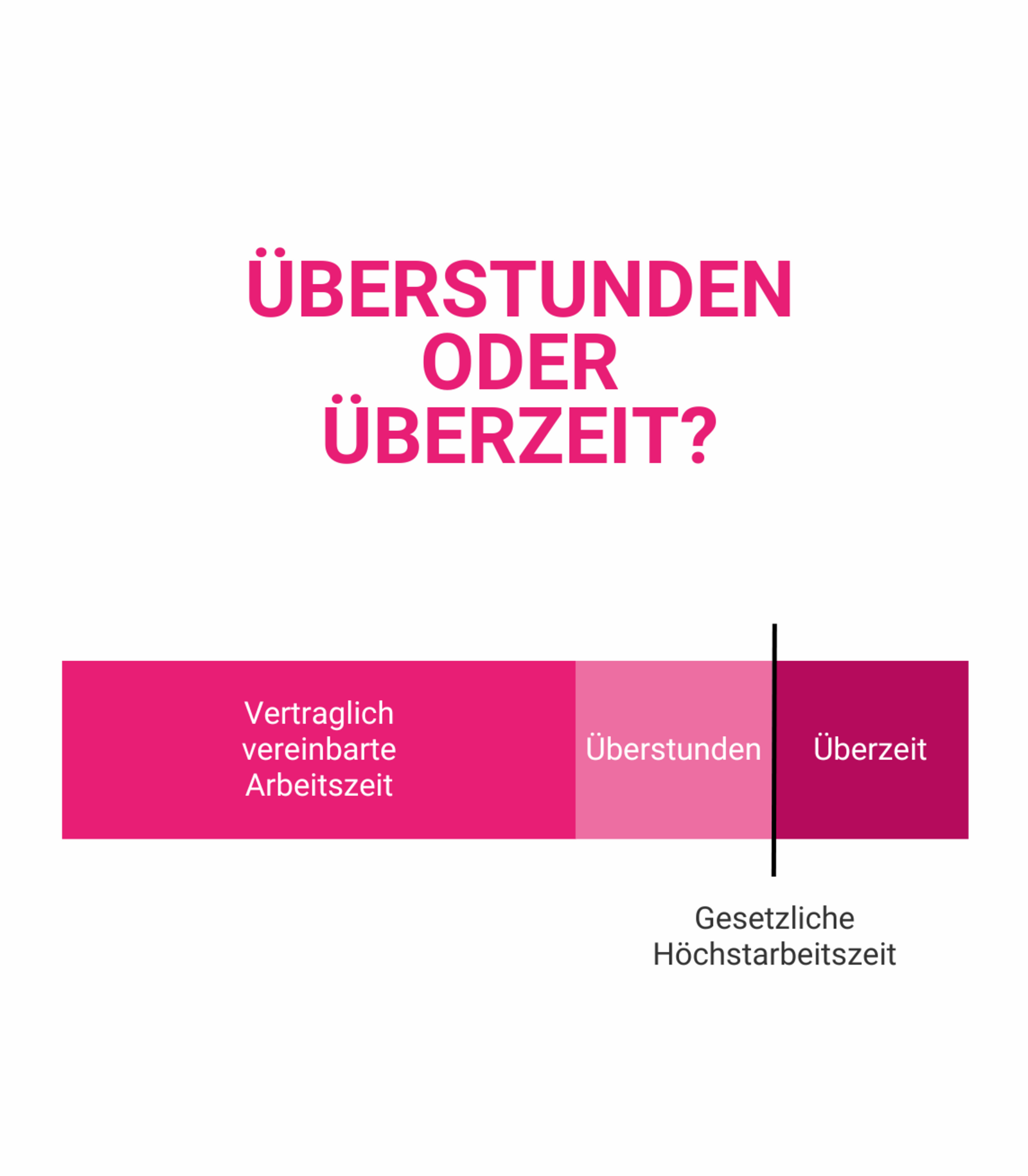 Alle Arbeitsstunden über das vertraglich vereinbarte Pensum hinaus. Kompensation durch Freizeit oder Auszahlung mit 25 % Zuschlag, sofern nicht vertraglich anders geregelt.