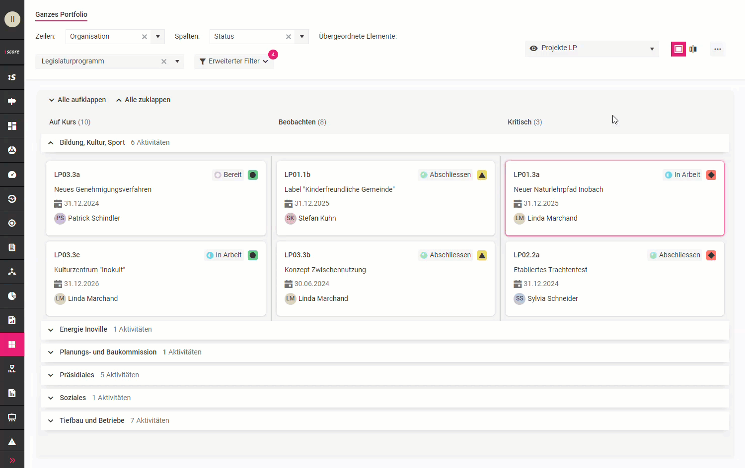 Verwalten Sie dank flexiblen Portfolios alle Projekte und Massnahmen abteilungsübergreifend.